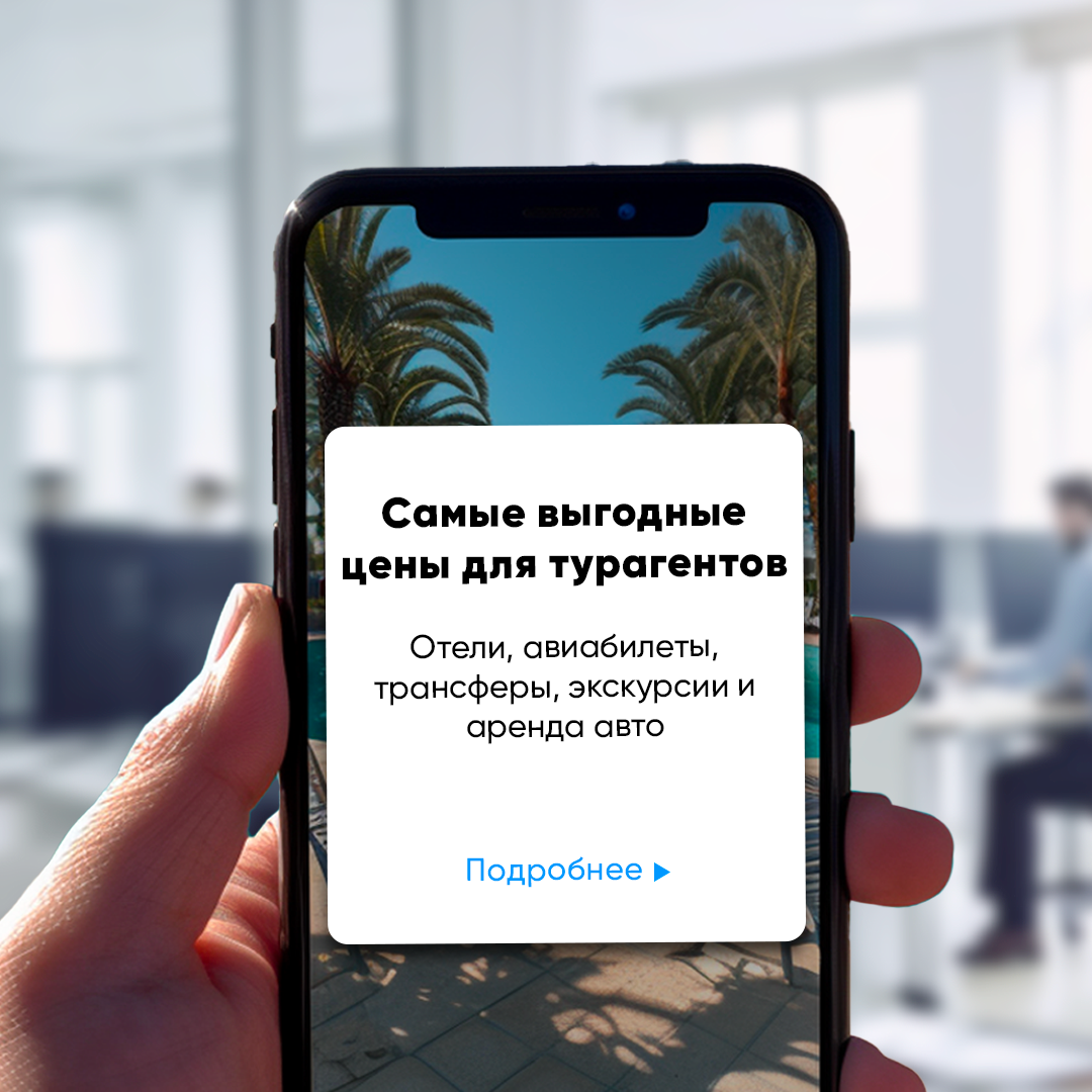 Для клиентов: Веб-сайт и мобильное приложение с самым большим набором туристических услуг, где инновационные технологии помогают быстро найти лучшее предложение и сэкономить до 50%, а персональный тревел-эксперт поможет бесплатно спланировать идеальный отдых без забот.