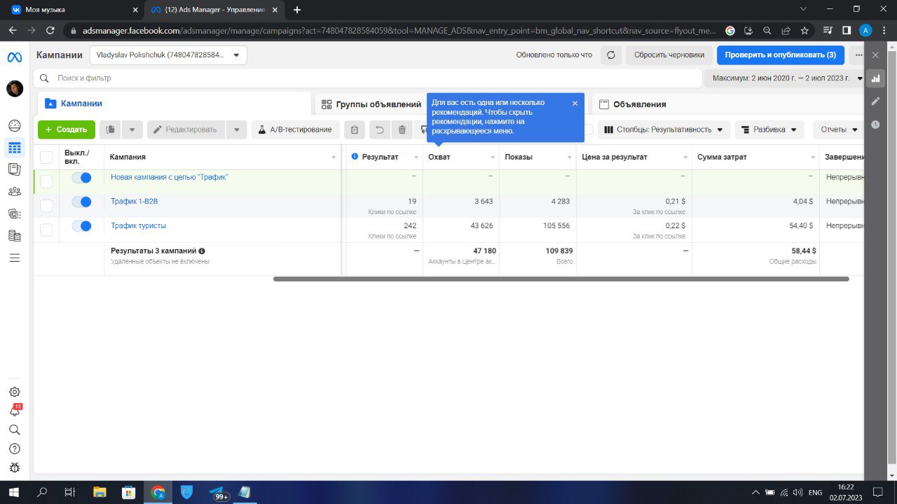 Такс, так как тут две целевые аудитории мы разделили их и запустили под каждую их них, если говорить это в цифрах, то: Туристы в Турции обошлись нам в 0.22$, а вот турагенты даже дешевле 0.21$
